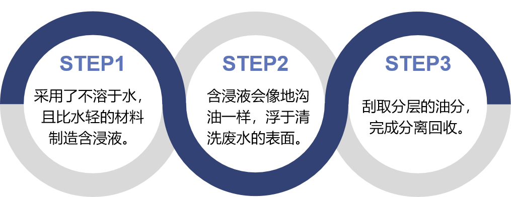 回收型(地溝油型)浸滲劑即低密度非水溶丙烯酸酯有機浸滲劑,其回收原理如下: